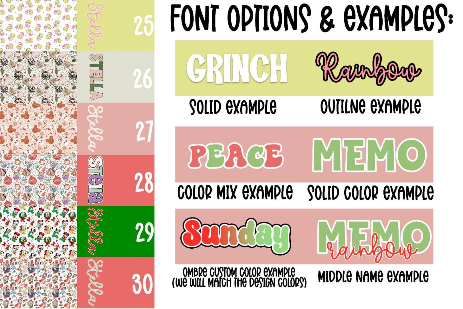 Personalize/Name Fill out with name/saying you want to be displayed on the right side of the bow. Be sure to double check your spelling, we are NOT responsible for spelling errors. We can not edit the order after it has been placed. If you realized you made an error, send us an email within 24 hours after order has been placed, you will need to reorder that option & we will refund you on error. After 24 hours please see FAQ
